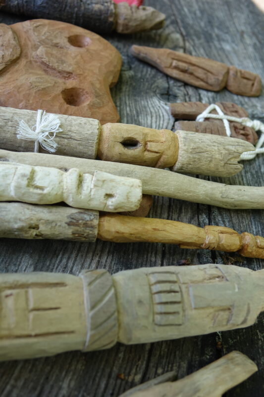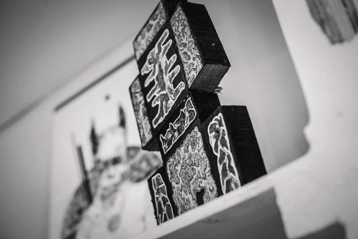 Valentin Poudret « Budwarrior » is a French-Caribbean visual artist working mainly in drawing and woodcarving. As a transdisciplinary artist, he questions our society by creating works linked to the ancient humanities, and taking inspiration from their relationship with the nature. He attempts to reinvent new forms of creation, reconnecting with the nature and other way of living through experimentations with vernacular practices that, through gesture and repetition, enable us to trace a form of survival in the face of new technologies. Resurgent from our collective memory, these ancient postures are necessary for our daydreams and our futures. Walking, tracing, collecting, transmitting, engraving, the matter of these experiments mixed in his work to make art projects and new experimentations with draws, installations and woodsculpture. Strong of his Caribbean roots, he also has a practice of writing taking the form of artist’s books and vegetable engravings.