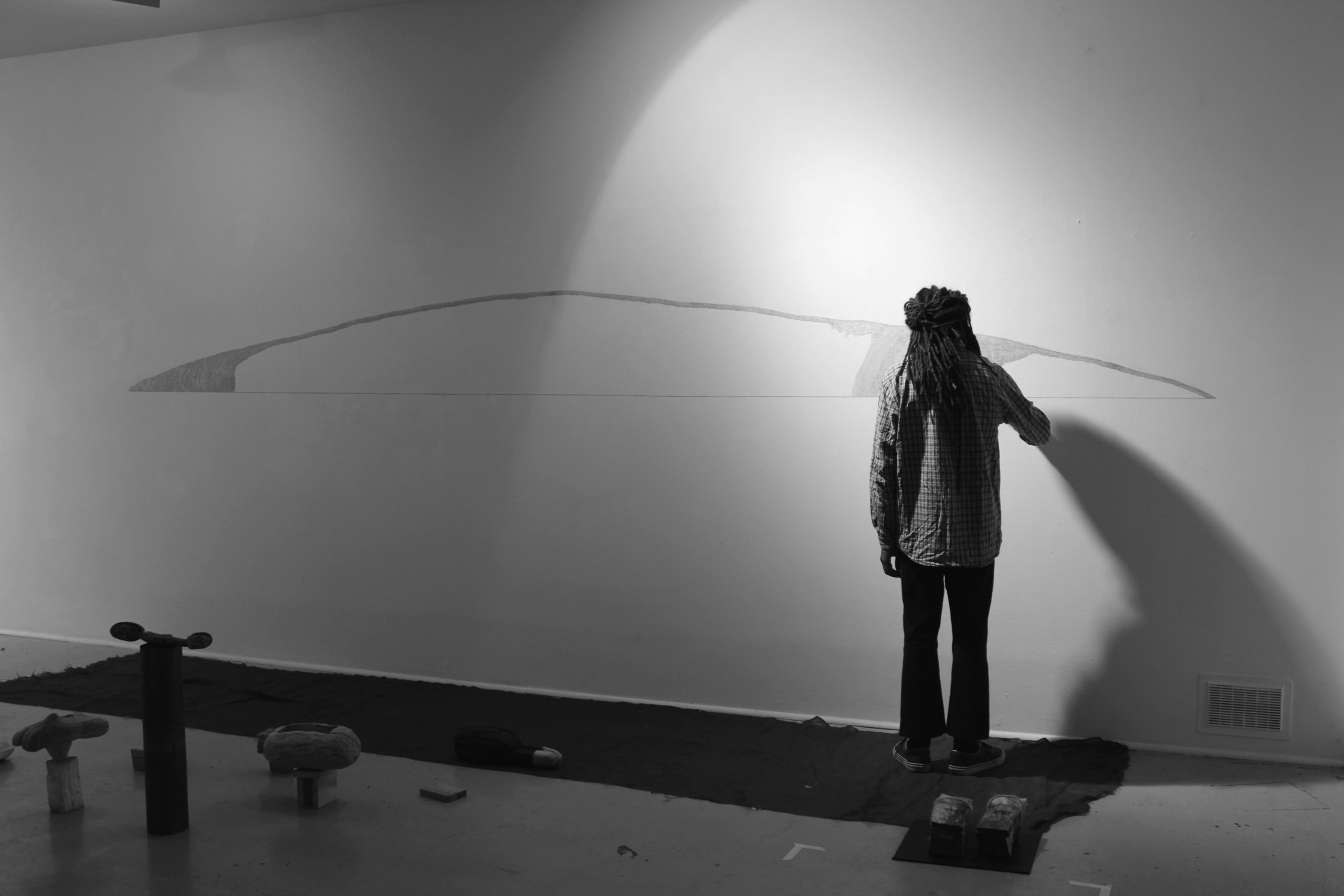 Valentin Poudret « Budwarrior » is a French-Caribbean visual artist working mainly in drawing and woodcarving. As a transdisciplinary artist, he questions our society by creating works linked to the ancient humanities, and taking inspiration from their relationship with the nature. He attempts to reinvent new forms of creation, reconnecting with the nature and other way of living through experimentations with vernacular practices that, through gesture and repetition, enable us to trace a form of survival in the face of new technologies. Resurgent from our collective memory, these ancient postures are necessary for our daydreams and our futures. Walking, tracing, collecting, transmitting, engraving, the matter of these experiments mixed in his work to make art projects and new experimentations with draws, installations and woodsculpture. Strong of his Caribbean roots, he also has a practice of writing taking the form of artist’s books and vegetable engravings.