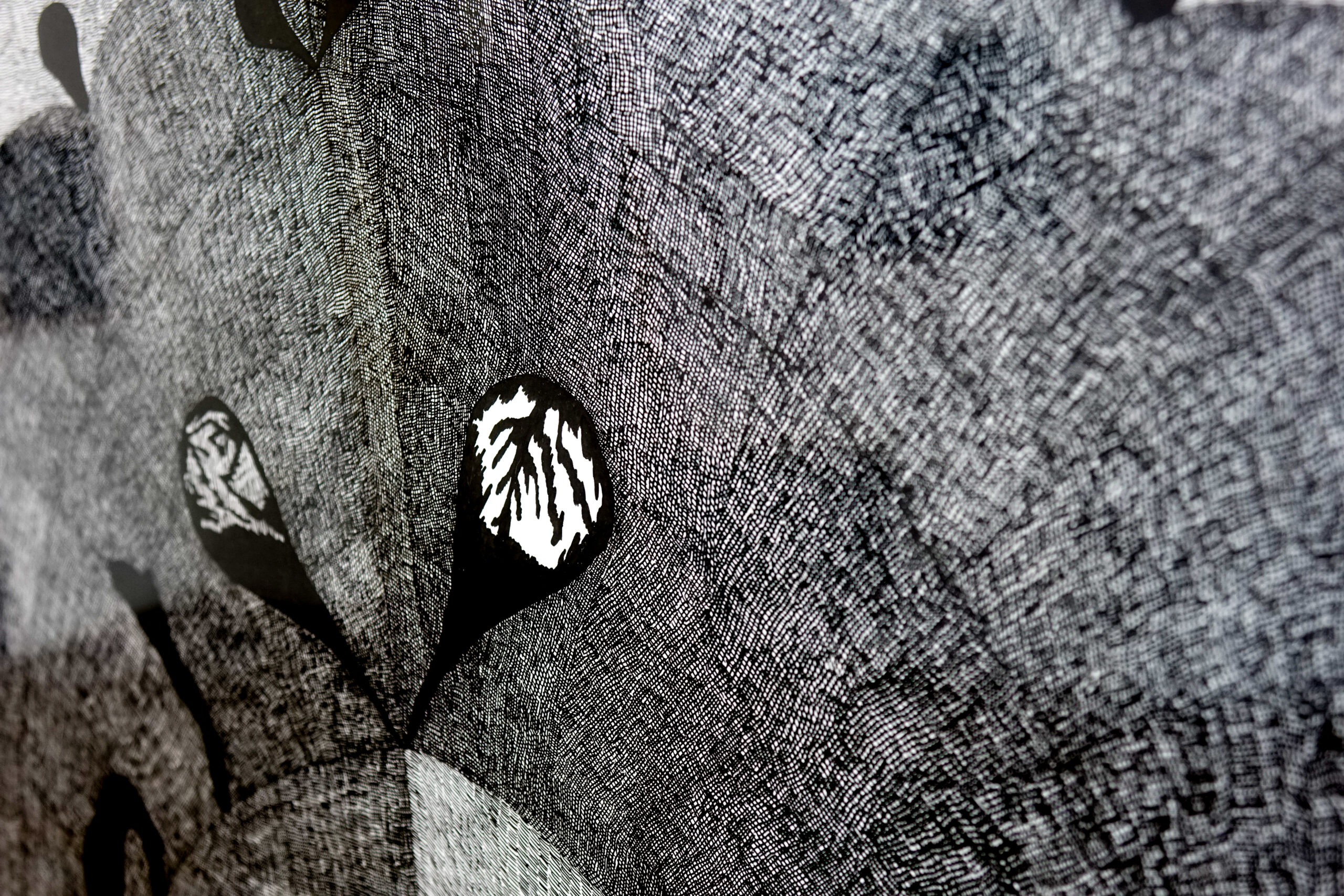 Le travail de dessin est une écriture primitive, la zone est libre comme l’écriture, les vibrations émanent dedans et dehors, bienvenue dans le travail de dessin de Budwarrior, dessinateur nomade et chercheur de temps à tracer.»